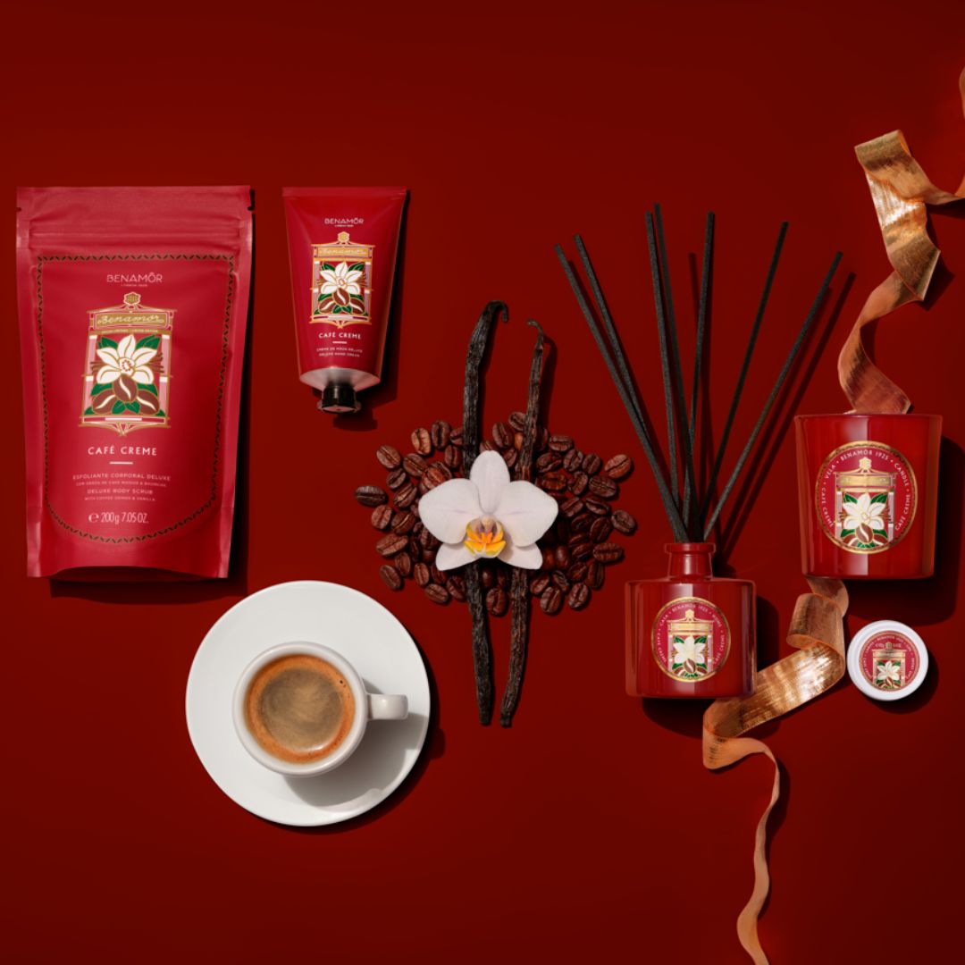 Experience a real body treat at home with our Limited Edition, Café Creme inspired by a century of Benamôr's botanical beauty recipes. Our deluxe body scrub combines natural extracts of vanilla and coffee from Portugal and São Tomé, rich in antioxidant and comforting properties. Revitalize your skin, leaving it hydrated, silky-soft and deliciously scented.